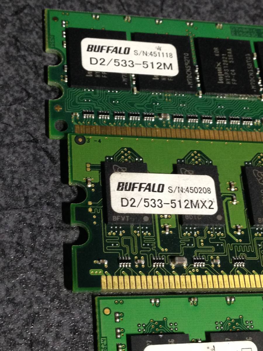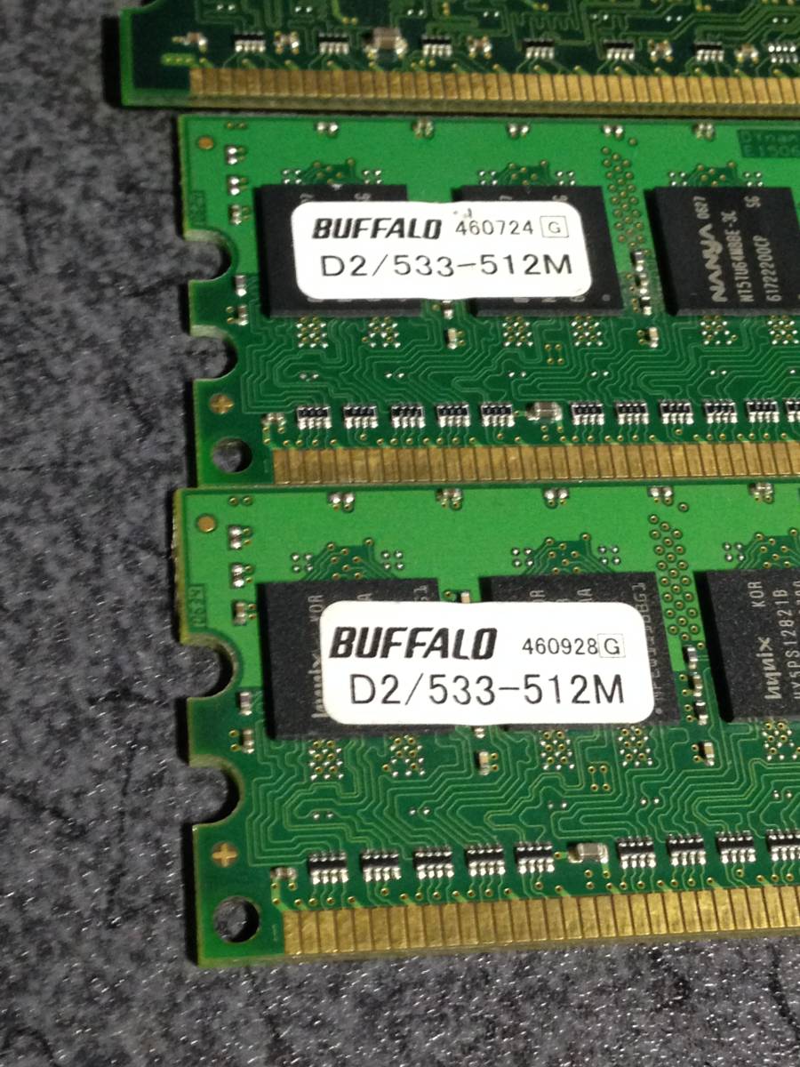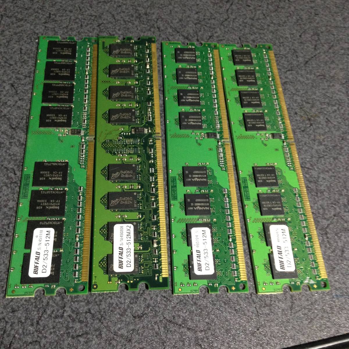BUffalo D2/533-512M 512MB 3枚 BUffalo D2/533-512MX2 1枚 合計4枚 2G バッファロー パソコン メモリー 増設