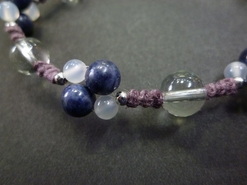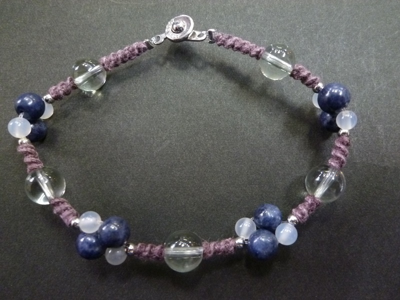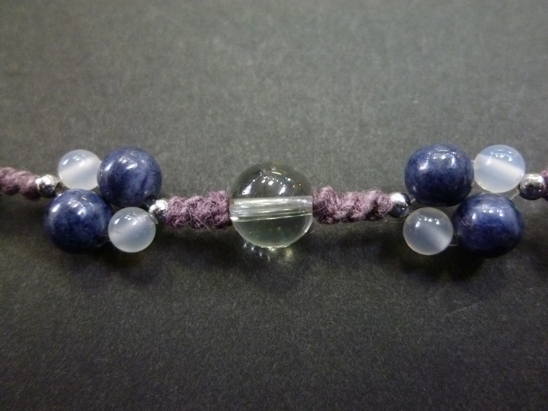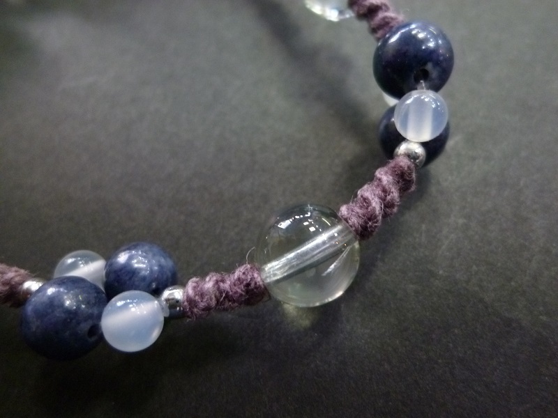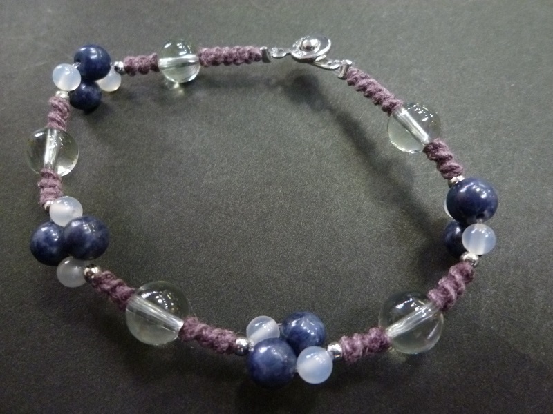 グリーンアメジスト サファイア ホワイトメノウ 手編みブレスレット