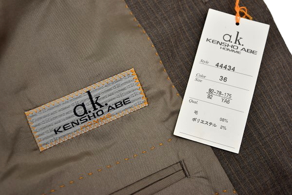 U182★新品★a.k KENSHO ABE HOMME★春秋 初夏 ブラウン 形状記憶プリーツ加工 3つボタンスーツ YA6 胸囲92cm ウエスト78cm