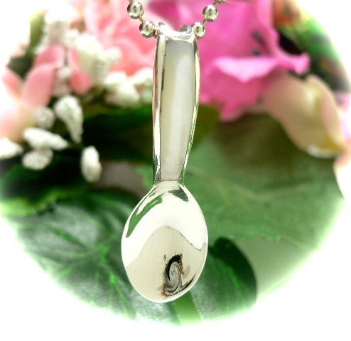シルバー925銀のシェル貝殻入り スプーン ペンダント/ホワイト