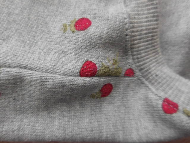 家庭用ミシンで作っているため、ニットの毛羽立ちがあります。