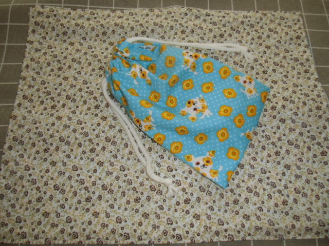 No.359 裏付ランチョンマット&巾着 ハンドメイド  35x45  お花&チワワ 女の子