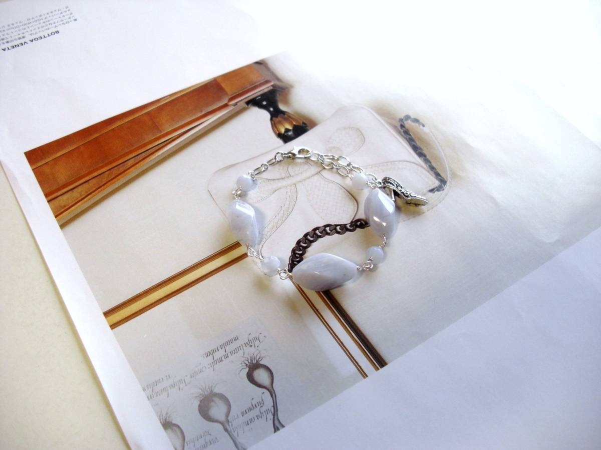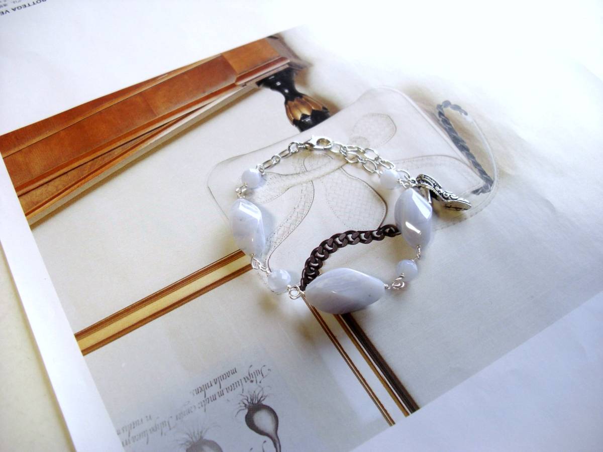 愛らしさを繋いで・・シリーズです♪ブルーレースを纏って・・爽やかな水色のブルーレースのブレスレットです♪個性的なカットの石なのでシンプルなデザイン にしました♪6ミリのランダムカット、20ミリから24ミリ位までのツイストカットのブルーレースにデザインチェーンを合わせてシックで大人っぽい表情で す♪長さは全長23センチ位で調節自由です♪長さ変更も可能です♪お揃いのネックレスやイヤリングも出品しています♪シンプルで飽きのこないいつまでも 着けられるデザインを考えて作りました!ハンドメイドをご理解頂いてノー クレーム、ノーリターンでお願いします
