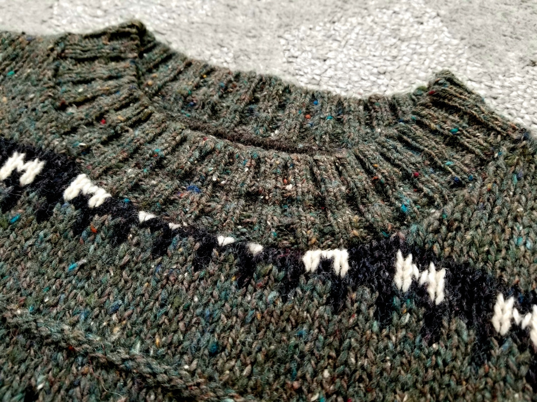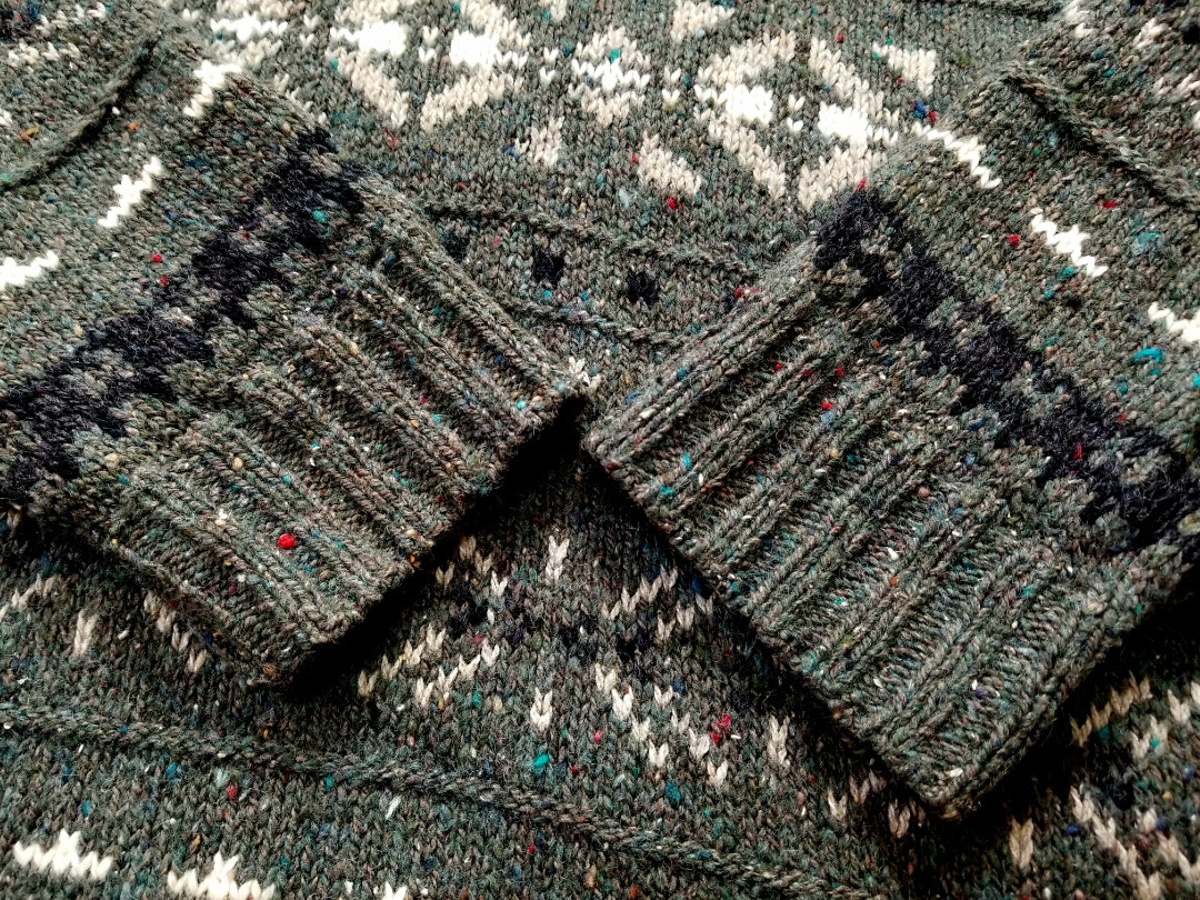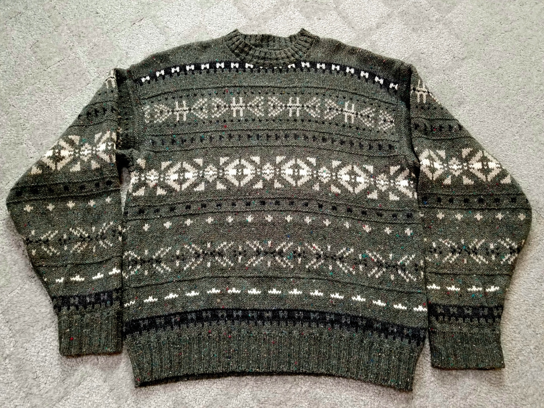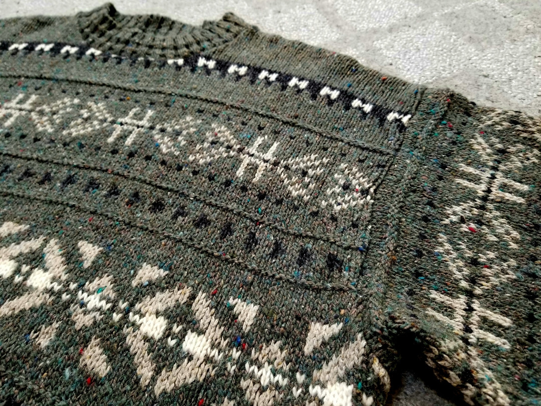カラーネップの入った糸でしっかりと編まれた良い柄の一着で、サイズ表記はMサイズです。