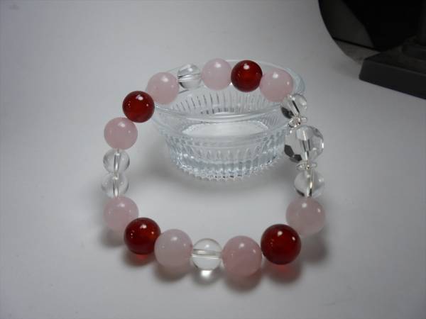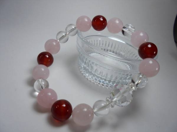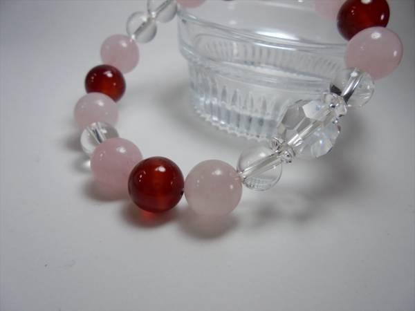 | 喜心-ローズクォーツ10mm-赤瑪瑙10mm-水晶5A8mm-天然石ブレスレット | |||