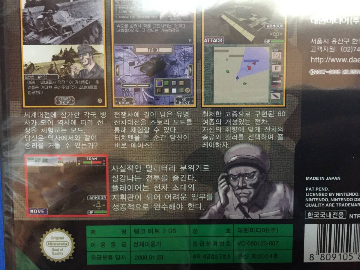 商品説明 | ニンテンドーDSソフト。 新品未開封品。 タンクビート2 激突! ドイツ軍VS.連合軍 韓国語版。 ニンテンドーDSはリージョンフリーなため日本のDS本体でもそのまま遊ぶ事が可能です。 戦車ゲームがお好きな方にオススメです。 タンクビート2 激突! ドイツ軍VS.連合軍 動画 https://www.youtube.com/watch?v=vB8lZkwczow https://www.youtube.com/watch?v=tZy4VYYLEFs https://ja.wikipedia.org/wiki/%E3%82%BF%E3%83%B3%E3%82%AF%E3%83%93%E3%83%BC%E3%83%88 ★発送方法 福岡から、クリックポスト、ゆうパケット、レターパックライト、レターパックプラス、ゆうパック(60サイズ)、にて発送できます。 海外発送も対応できます。 |