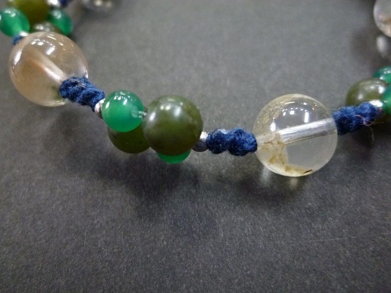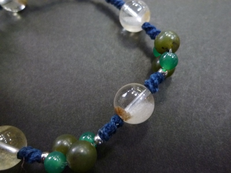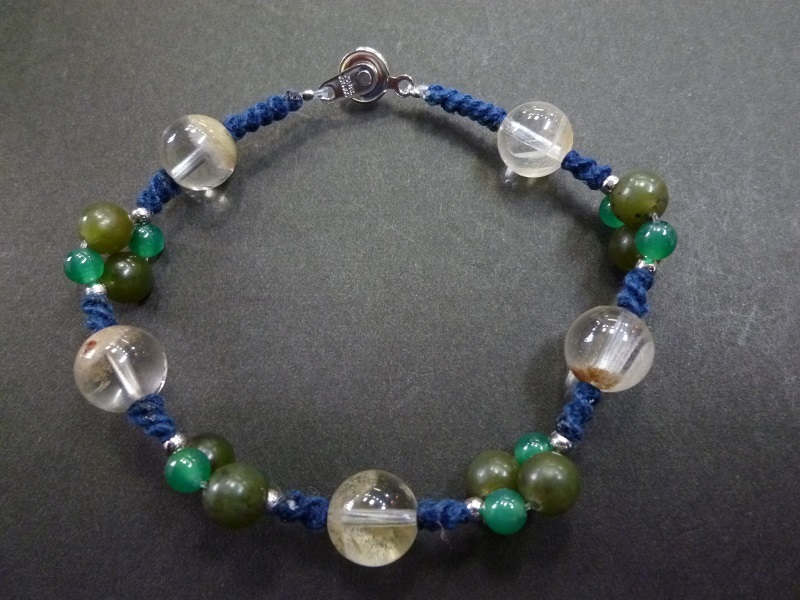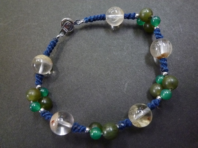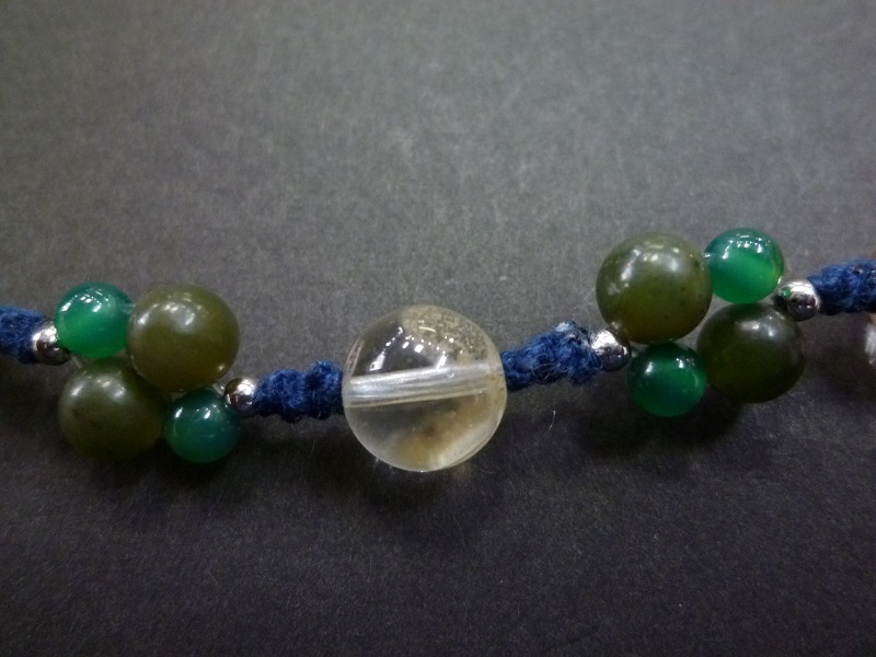 ホワイトガーデンクォーツ カナダヒスイ グリーンメノウ 手編みブレスレット