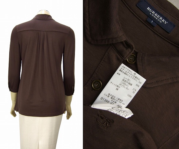 C)新品同様*バーバリーロンドン BURBERRY LONDON 三陽商会★ホースマーク×優艶とろみ素材★上品7分袖カットソー★1(Sサイズ 7号 36)