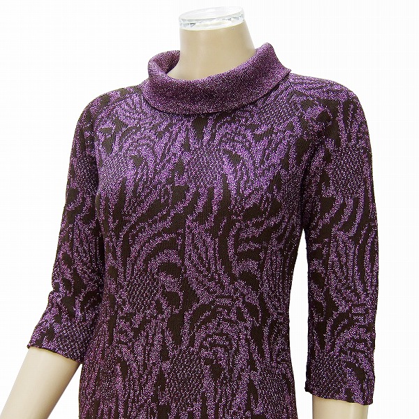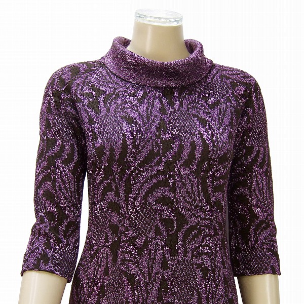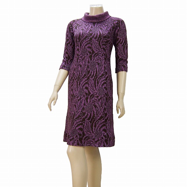 OP)新品同様*サイトウトヨコ 斉藤都世子 SaitoToyoko★アメジスト系×ラメ混★ボタニカル柄★高級7分袖ニットワンピース*Mサイズ 9号 38位