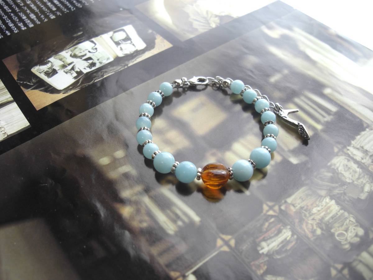 巴里色・セレクト・・シリーズです♪水色に恋して・・神秘的なアマゾナイトとベネチアンビーズのブレスレットです♪ブルーグレーのアマゾナイトは8ミリ、6ミリの丸玉でアクセントのベネチアンビーズは10ミリです。間にメタルチャームを挟んでい ます♪長さは16センチ+アジャスター6センチで最長22センチ位です♪♪お揃いのネックレスも出品しています♪シンプルで飽きのこないいつまでも着けられるデザインを考えて作りました♪ハンドメイドをご理解頂いてノークレー ム、ノーリターンでお願いします