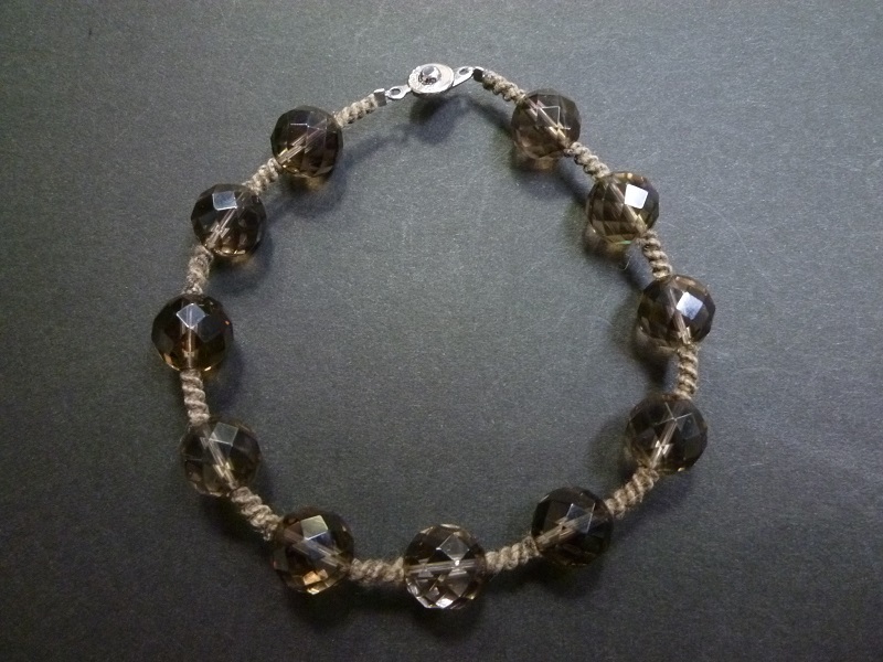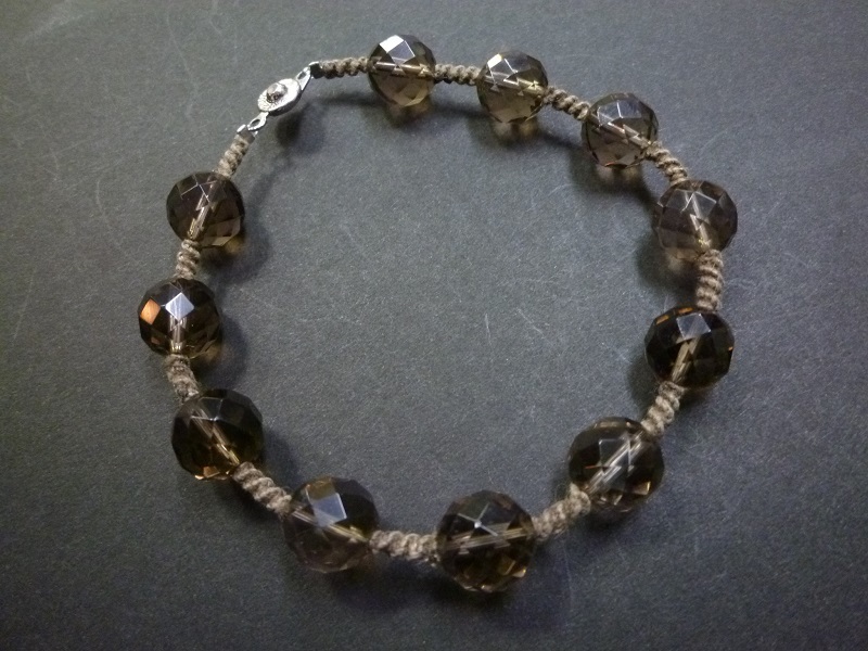 スモーキークォーツ(64面カット) 手編み ブレスレット