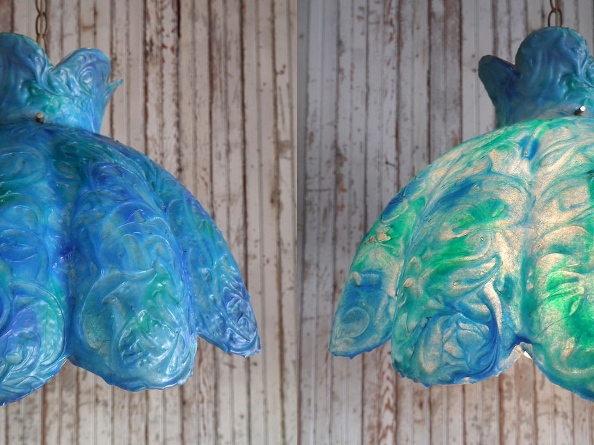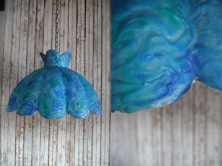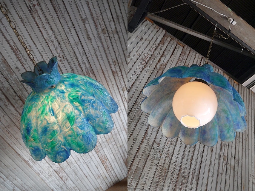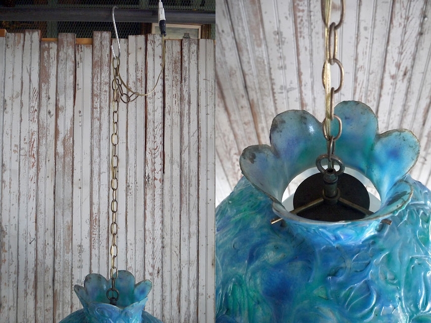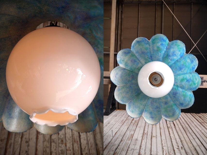 商品説明 岡山STAGEより出品します。アメリカで買い付けたアクリルシェード吊下げランプです。1960年代のランプで珍しいフォルムのアクリルシェードにブルーカラーがおしゃれで内部のミルクガラスシェードとの相性も良く灯りをともすととても雰囲気があります。大きめサイズで存在感もありお部屋からショップまで幅広くディスプレイしていただけます。状態ですが画像にもあるように表面に経年による小さな亀裂が数か所あり内部に汚れがございます。その他、小傷や擦れ、汚れ、塗装劣化、多少の歪み等はございますが雰囲気を損なうようなダメージはなくアンティークならではの良い状態かと思います。あくまでアンティークになりますのでご理解いただける方のご購入をよろしくお願い致します。 サイズ 高さ約37cm、直径約57cm、ガラスシェード直径約25cmです。 予定発送方法 保障の利く佐川急便の元払い200cmサイズ料金と100cmサイズ料金の2個口で行います。 コメント コンセント式ですので別途735円でシーリング式への交換と長さ調節もいたしますのでお気軽にご相談ください。(現状チェーンは約80cmです。切り縮めは無料、延長の場合は要相談)店頭でも販売しております。タッチの差で売れた場合はご了承下さい。■落札後の連絡及びご質問の返答は基本的に午前10時~午後6時までとさせて頂きます。毎週水、木曜日、年末年始や時間外でのご連絡は休み明け及び翌日のご連絡となりますので予めご了承下さい。 STAGEホームページ https://stage-stage.ocnk.net// |