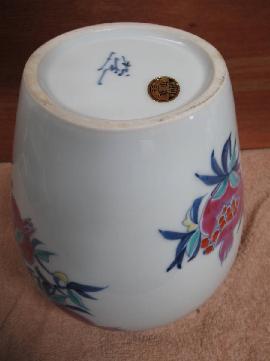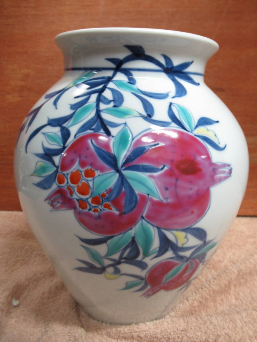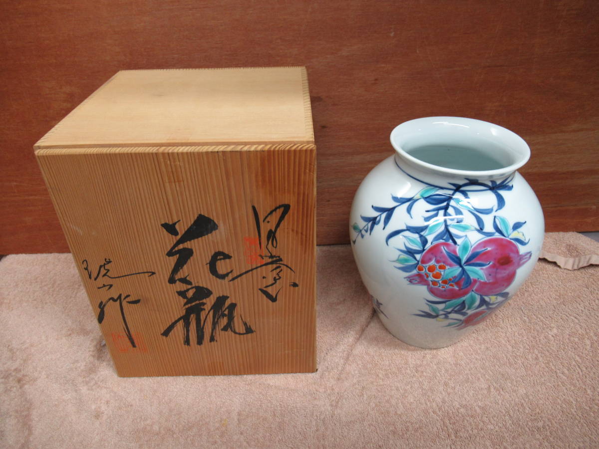 花瓶 琥山 有田焼 鳳仙窯 琥山作 花瓶 共箱付 石榴・ざくろ 花器 華道具 琥山窯 石榴紋花瓶
