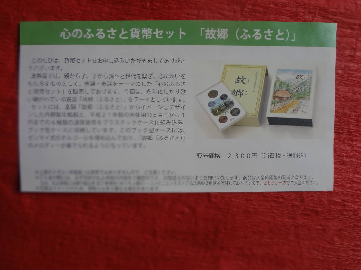 『心のふるさと貨幣セット 「故郷(「ふるさと)」 (オルゴール付) 』 1セット  造幣局送金時案内リーフレット付き