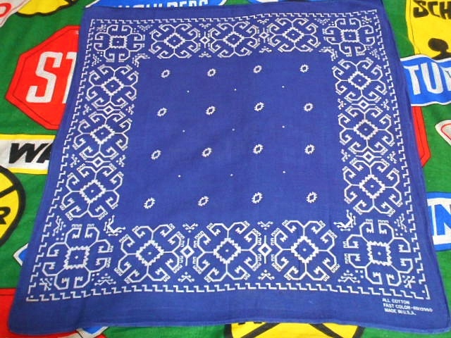 ★幾何学系のプリントが◎な1枚★Made in USA製アメリカ製Elephant Brandビンテージコットンバンダナ60s60年代FAST COLOR紺色ネイビーNAVY
