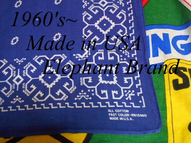 Item : 1960's~ Made in USA Elephant Brand FAST COLOR Vintage Cotton Print Bandana