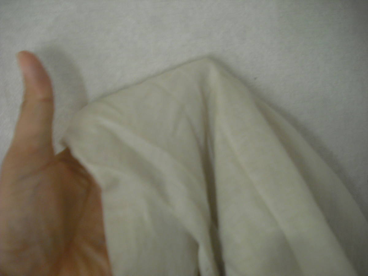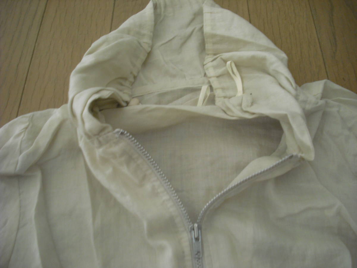 写真のような前ファスナーの洋服になります。 両袖にボタンあり。 左右のポッケは真ん中が縫われていて使用できません。 デザインでしょうか? NO.7181020-38 サイズは38 本体:綿100% 別布:綿100% フード:綿76% キュプラ24% 株式会社イッシュ 日本製 おおまかですが・・・着丈50cm、身幅48cm、袖丈45cmくらいです。 写真の状態でメジャーで測っています。 私見ですが…お色はブ薄いベージュ、クリーム色っぽいです。 保管中の汚れ、畳みジワ、経年劣化、他商品と触れあっているため糸クズの付着などございますし、中古であり、個人所有になりますので糸のほつれ、汚れやスレなどの痛みがある場合もございます。 現状でよろしくお願いします。 約117g 簡易包装の定形外郵便150gかレターパックライトで発送予定です。 |