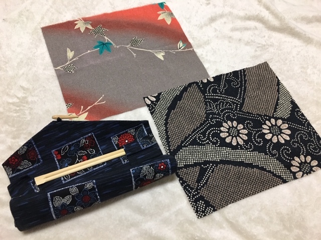 とても素敵な、藍染木綿絣模様花柄箸収納袋8膳用(収納時:約27×8×1cm)&縮緬生地2種(絞り柄:約30×26cm、紅葉柄:約31×27cm) 、未使用ですが新品ではありませんので、詳細はご了承くださ!お気に召した方はいかがですか?