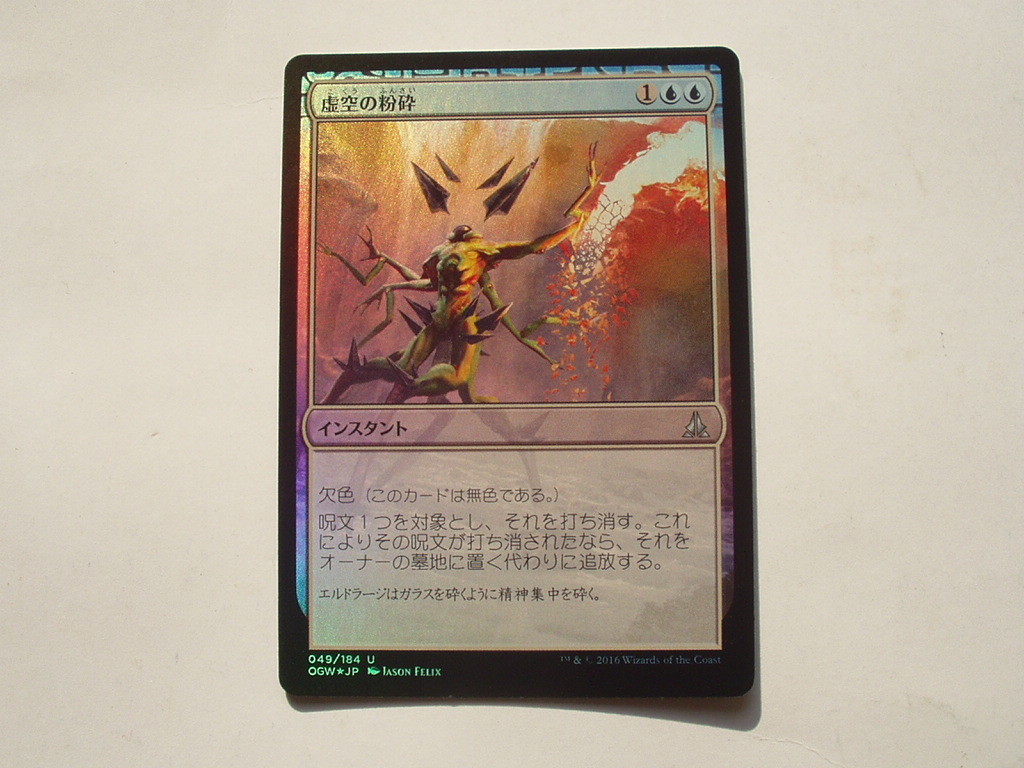 B知人の委託品です。 画像が全てです。 MTG 虚空の粉砕/Void Shatter foil 日本語1枚です。 何語だか分らない時があります。 エキスパンション、外国語(言葉)は画像で確認をお願いします。 カードはプレイしています。 プレイ後、カードはスリーブから出してストレンジボックスの中で保管していました。 カードに目立つ擦り傷、キズ、ペン跡のようなキズ、汚れ、角や端に傷、白枠、黒枠にキズ、などのキズが結構あります。 スリーブに入れないでストレンジボックスに保管してたので擦り傷が沢山あります。 カードからタバコや香水の匂いがします。 カードが大きく丸まっていたり反ってたりしています。 気が付かない部分がありますので程度を気にする方は入札をご遠慮下さい。 程度は下、ボロです。 コレクションには向きません。 何か起きた場合には自分では対応が出来ませんのでご理解頂ける方のみ入札をお願いします。 落札価格に普通郵便送料を頂きます。 郵便事故や郵便破損が起きた場合には保障できません。 ノ-クレーム、ノーリターンでお願いします。 ●クロネコメール便は2015/3/31で発送が出来なくなりました。ご了承下さい。