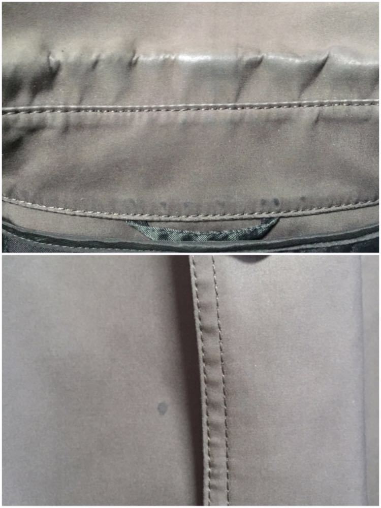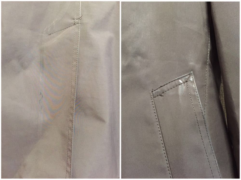 プリーツ部分や、左ポケットなどに多少テカリあります。