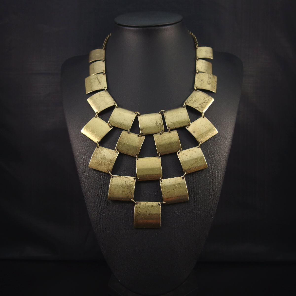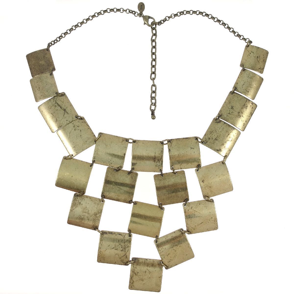 A3408◆ 【JOAN RIVERS】 ◆ ヴィンテージスタイルのスクエアパーツが垂れるビブ型のネックレス ◆ 長さ40㎝ ◆