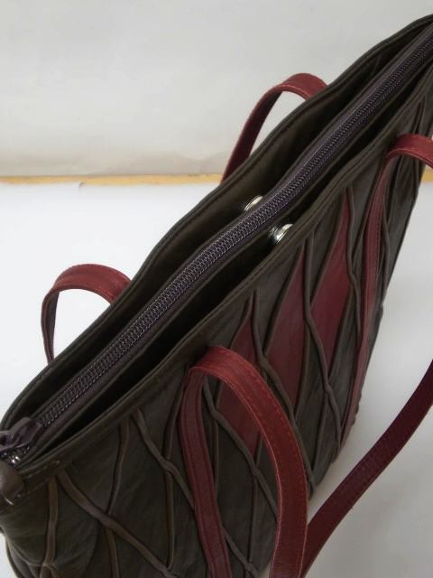 『通気性・吸湿性・柔軟性・耐寒暑性・非帯電性などの特性を持つ秀れた素材牛革のデザインワーク加工したトートバッグ』