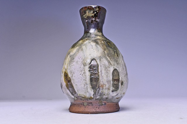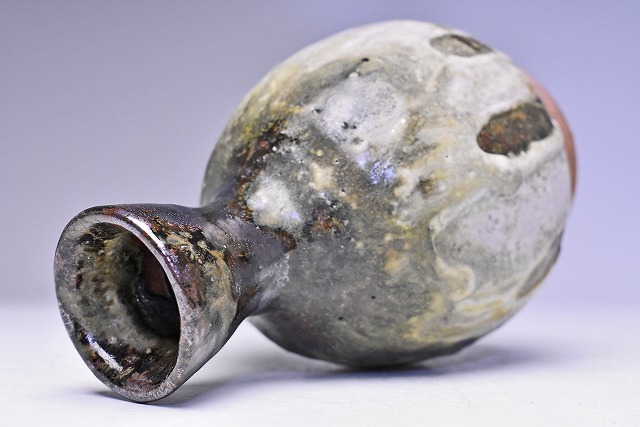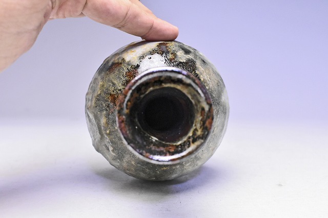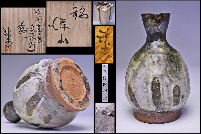 名工 村田珠光 ( 村田哲夫 ) 氏の 作品です。 氏 独特の 釉景が 唯一無二 の 景色となった 逸品です。 高台が 大きいですが 大振りな 徳利としても 楽しめそうな 逸品です。