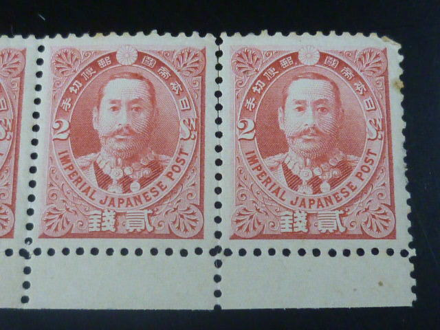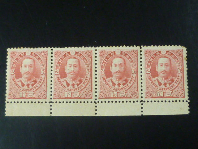 19 S 日本切手 1896年 記3D 日清戦勝 2銭 有栖川 4枚連刷 未使用NH・目打ち離れ有