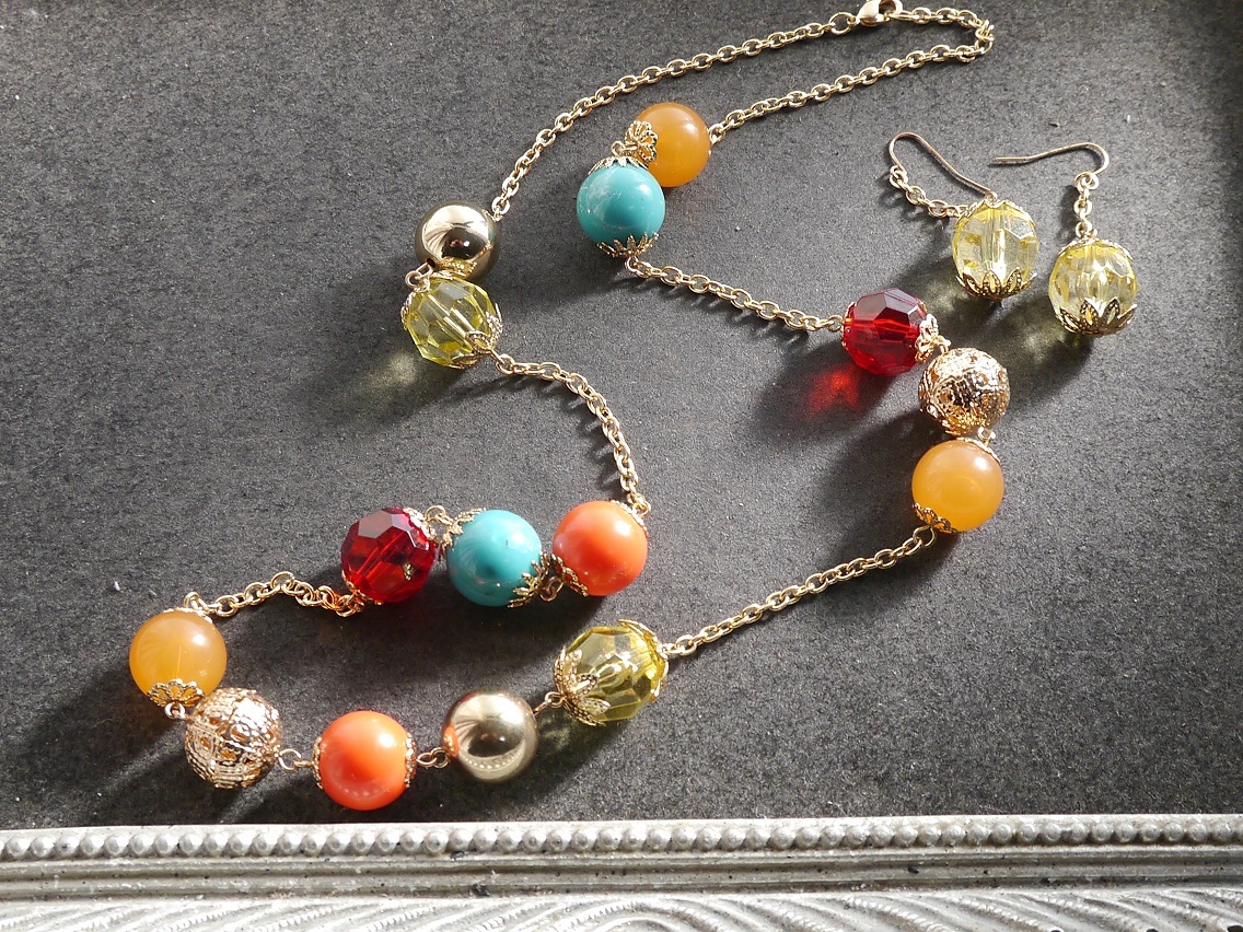 ヨーロッパやアメリカで販売されているインポートアクセサリーを取り扱いしています。 国内では入手困難となりますのでお早めにどうぞ。 結婚式や二次会・パーティのドレスに合わせていかがでしょうか? 新品・未使用 サイズ ネックレス 70cm ピアス 縦4×横1.5cm | ||