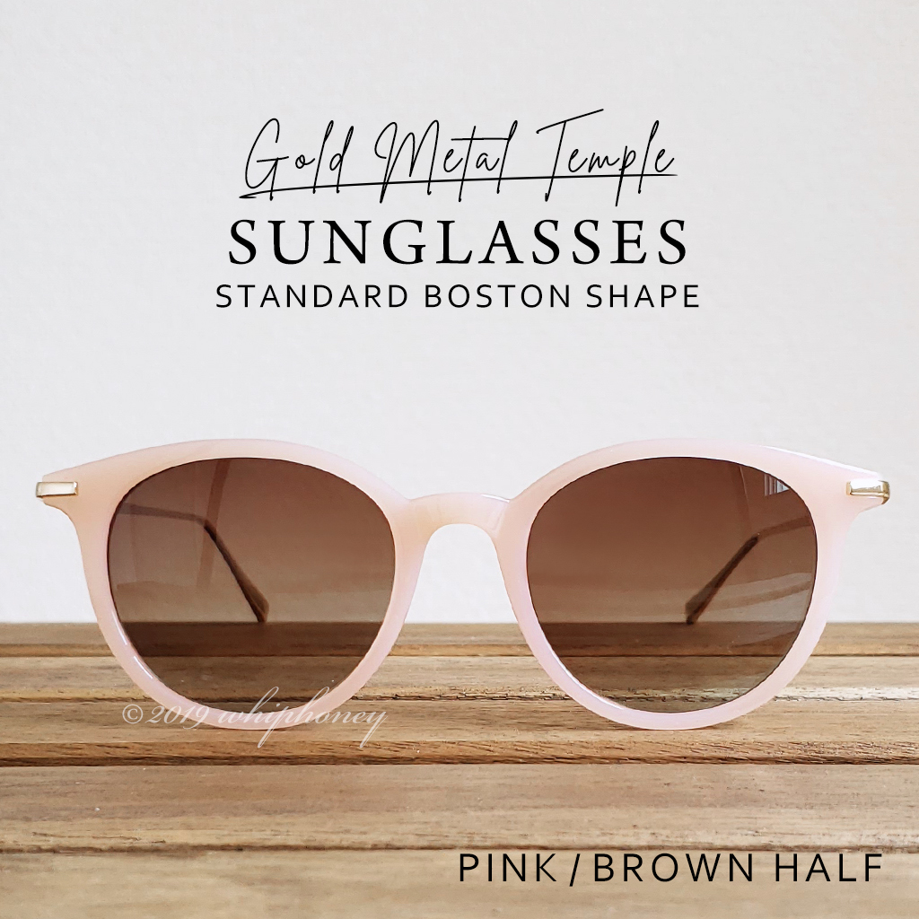 ボストンUVシアーサングラス ゴールドメタルテンプル ベージュピンク ブラウン