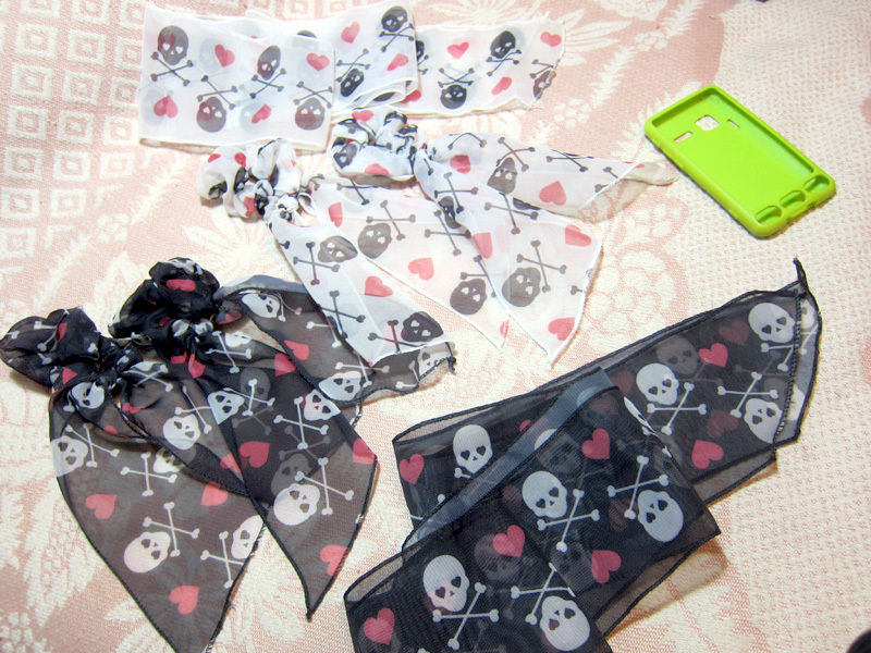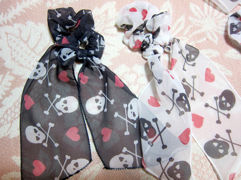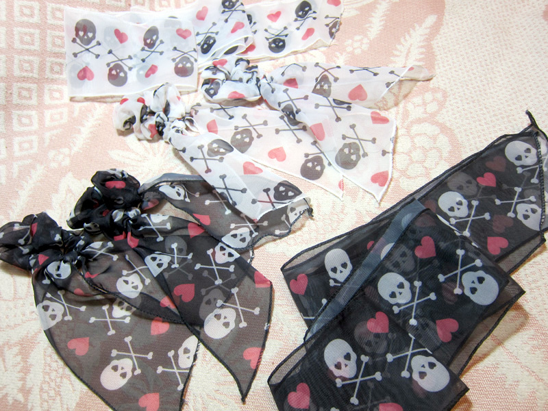 即決★6点セット★ヘアアクセサリー★おリボン★ハロウィーン★シュシュ★ドクロ★ハート★ハロウィン★頭蓋骨★ヘアバンド★白黒★美品