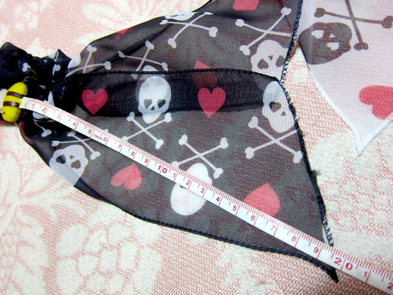 シュシュ、輪直径10センチ(ゴムにて伸びます)、リボン長さ約20センチ
