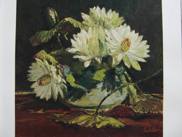スカルノ大統領所蔵、エルネスト デゼンチュ、蓮の花、希少画集画、新品額装付、choco