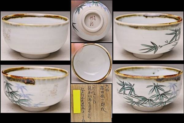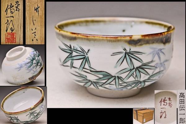 高田伝一郎 ★ 九谷笹文ぐい呑 ★ 共箱栞 ★ 酒器 ★ 皮鯨 ★ 検 古九谷 ★