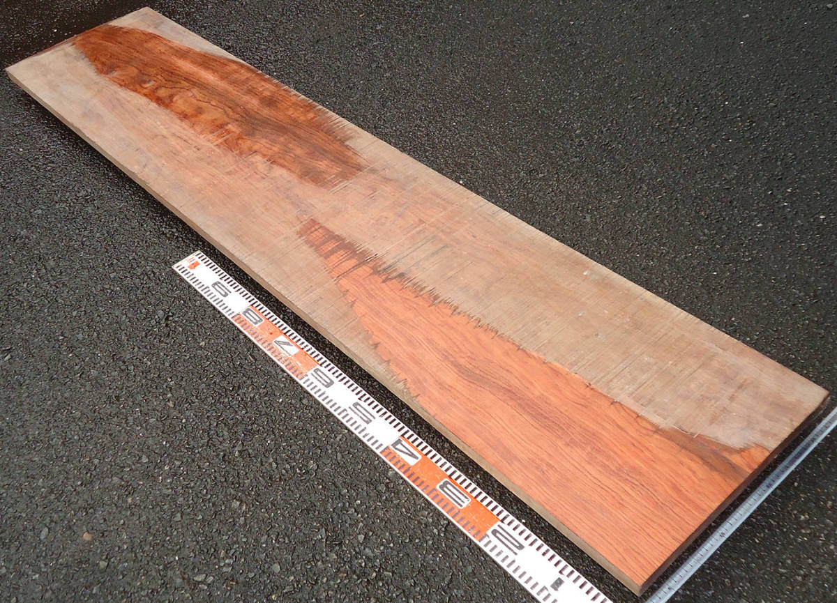 含水率は、ほぼ均一で乾燥状態は良好。変形があり、厚みの有効性を考慮して製材したままの状態です。この長さで平面加工すると、おおよそ15mm前後になるかと思います。