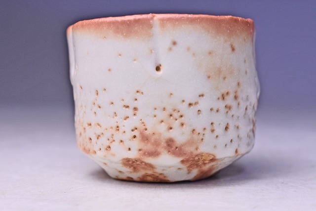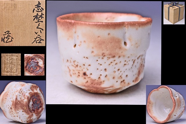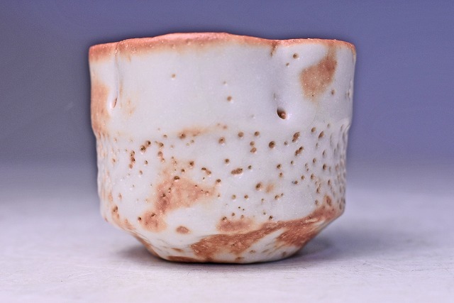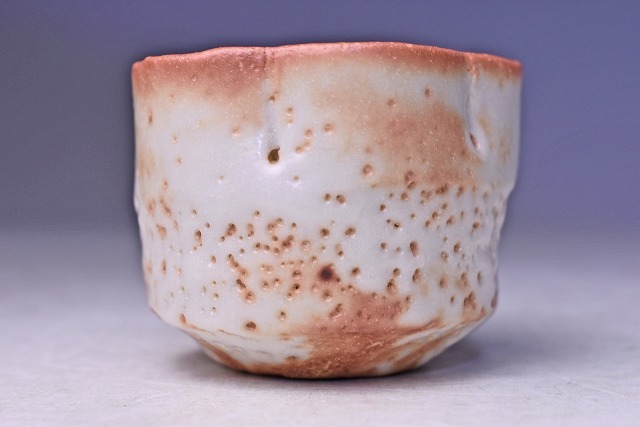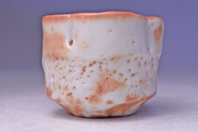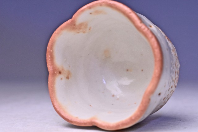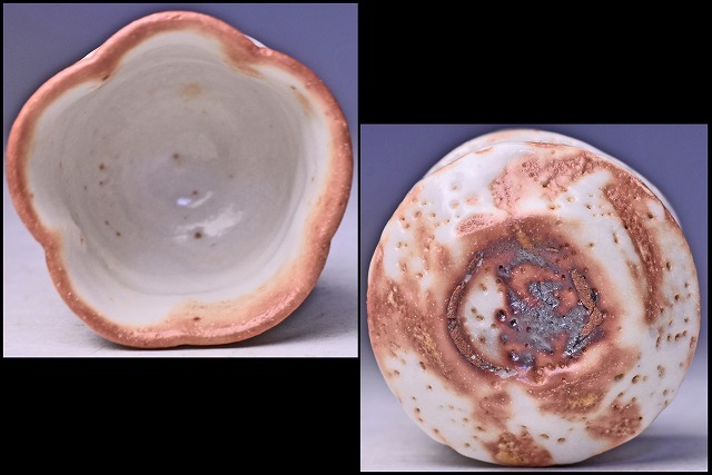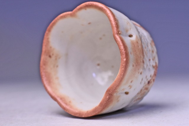 鈴木蔵 ★ 志野 輪花 ぐい呑 ★ 共箱: 安藤箱 ★ 人間国宝 ★ 酒器 ★ 師: 荒川豊蔵 ・ 加藤土師萌 ★ 氏らしい暖かみのある緋色の逸品