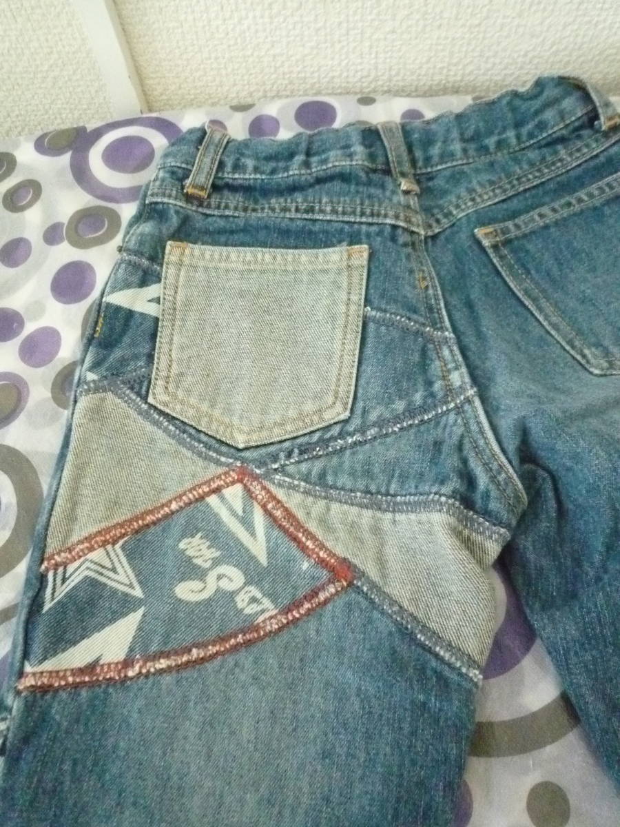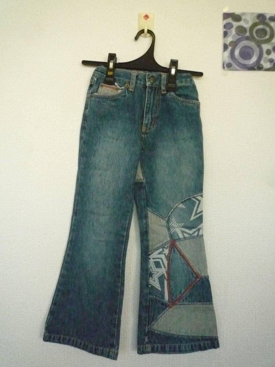★ JOUER AUX ECHECS 子供ジーンズ < 110 > パッチワーク風デザイン ウエストゴム