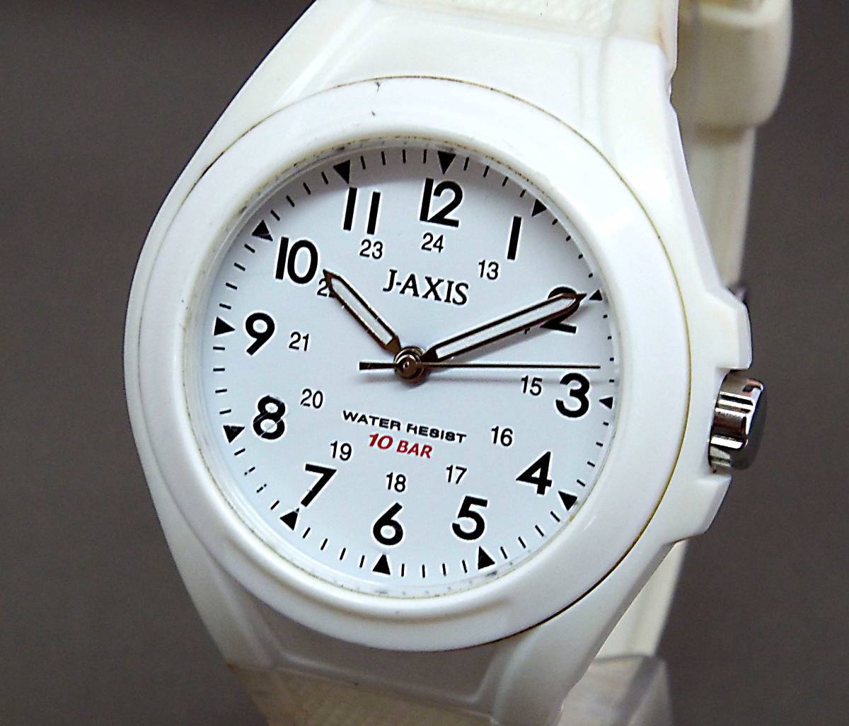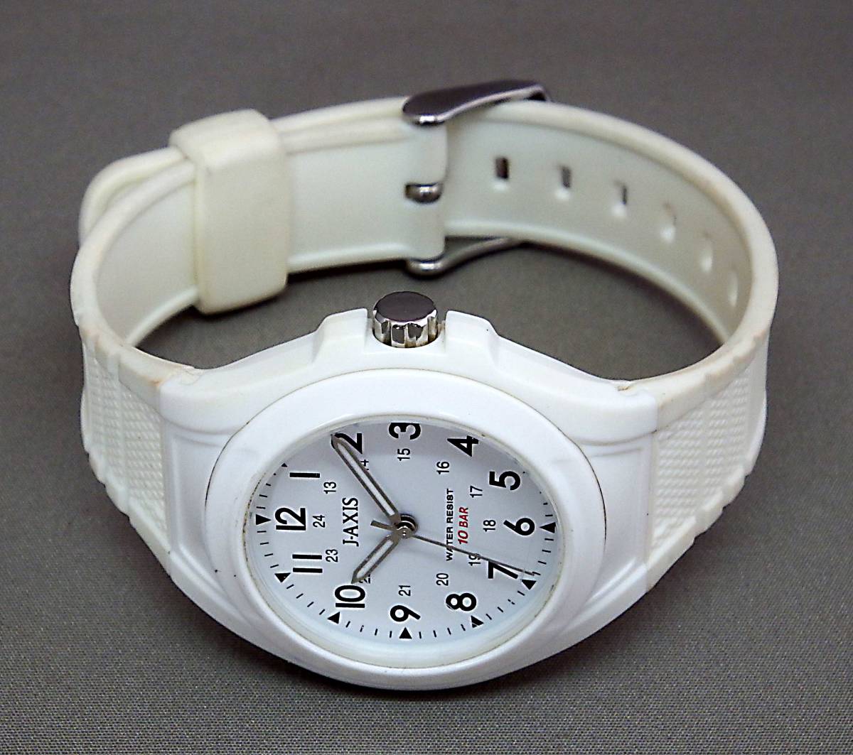 EU-9829■J-AXIS サンフレイム メンズ腕時計 3針 白 AG-1328 中古 重さ 28g ★商品の程度はBランクです。ランクについては下記の「程度注釈」にてご確認下さい。★ ■商品説明■ USED品です。使用感あります。ガラス面・ベゼル・裏蓋・ケース・バンドには若干の小キズ・スレ・汚れがあります。ガラス面には多数のキズがありますが、針・文字が見にくいことはありません。 ディスプレイやデジカメの特性上、実物と多少色が違うことがあります事をご了承ください。 また、バンドの腕周りは充分ご確認ください 。 ■仕 様■ ★防水10BAR ★裏蓋材質:SS/プラスチック ★バンド幅:約2.2cm ★腕周り:約20.0cm(最長) ★文字盤ケース 直径3.8cm 〔手採寸〕 ★重さ 28g ★3針 ★クォーツ 令和1年7月 動作確認済み ★型番:AG-1328(内) ■写真以外の付属品などはありません。 ■『クォーツ時計(電池式)』につきましては、当店では、出品時に動作確認(機能・電池切れのチェック含む)をしておりますが、電池の残量は不明です。 電池も中古ですので、保管~お客様のお手元に届くまでの期間に「電池切れ」になることもございますが、原則として、そのまま発送させていただきます。 (「電池切れ」の場合は、最寄りの時計店で、お客様負担にて電池交換していただくことになります。) 当店では、お客様に時計をお安くご提供させていただくため、 電池の新品交換費用(通常、約1,000円)は、価格に組み込んでおりませんので、 無償での電池交換はお受けできません。 この様な条件を理解された上で、ご入札をお願い致します。(ジャンク品を除く) ■あくまでも中古品扱いですので、記載以外のダメージもある場合がございます。 保存期間があったため、お手入れが必要な場合がございます。 ■直接店頭にてお品物をご覧になりたい場合には、事前に質問欄よりその旨ご連絡をお願いいたします。ご連絡をいただいていない場合にはお見せできない場合がございます。 ★程度注釈★ ●Nランク… 完全新品:箱や紙袋の有無は商品によって異なります。 ●Sランク… 展示未使用品:新品ではないが、使用感がほとんど伺えない商品です。 ●Aランク… 中古品:小キズやスレなどが若干ありますが、全体的には綺麗な商品・美品です。 ●Bランク… 中古品:一般的な中古商品。明らかな使用感があり、小キズ・スレ・汚れも目立ちますが、まだまだ充分ご使用できる商品。平たく言えば街中でよく見かけるくらいの状態です。 ●Cランク… 中古品:小キズ・スレ・汚れもかなり目立つ使い込んだ商品。状態は正直悪いですが、使用には充分耐えられ、お値打ち価格で入手できる商品。とにかく安くほしい!と言う方にオススメです。 |