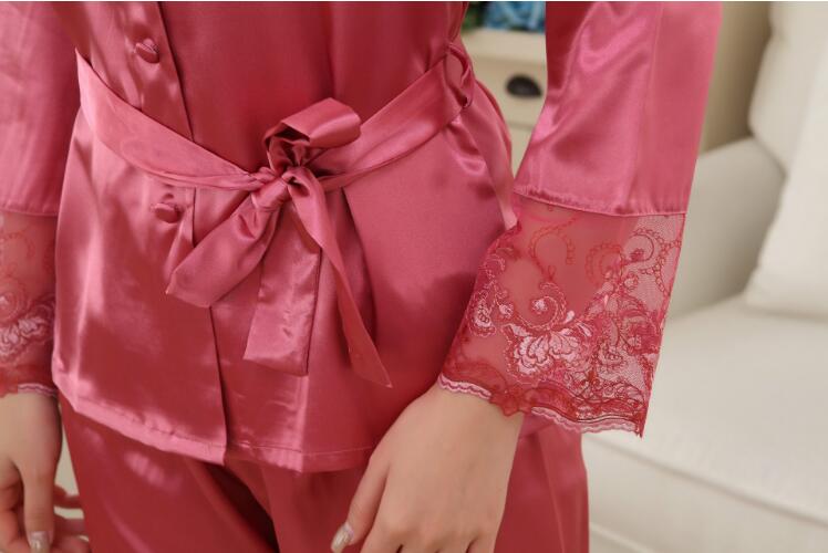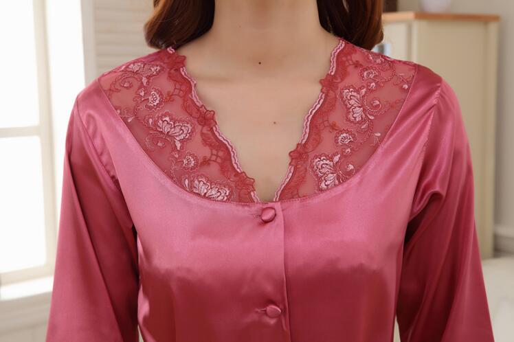 | ★高級シルク上下パジャマセット★刺繍★L★浅緋★ |