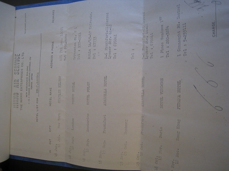 商品名 : 古い書類 日興エアーサービス 旅程表