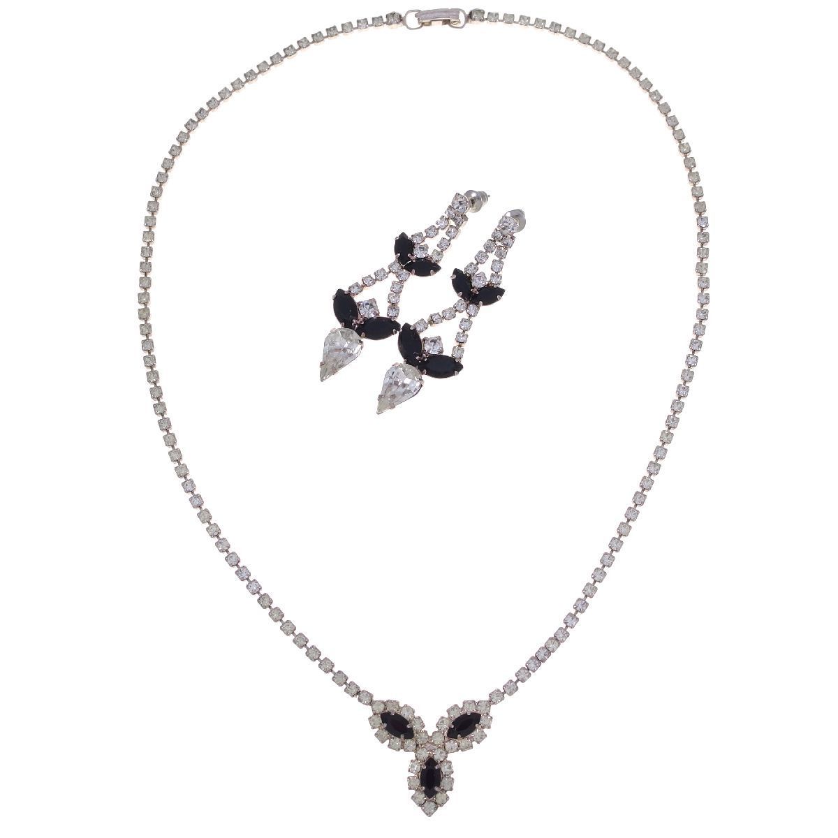 A3059◆ ブラック&クリアラインストーンで飾られたヴィンテージネックレス ◆ 長さ約45㎝ ◆