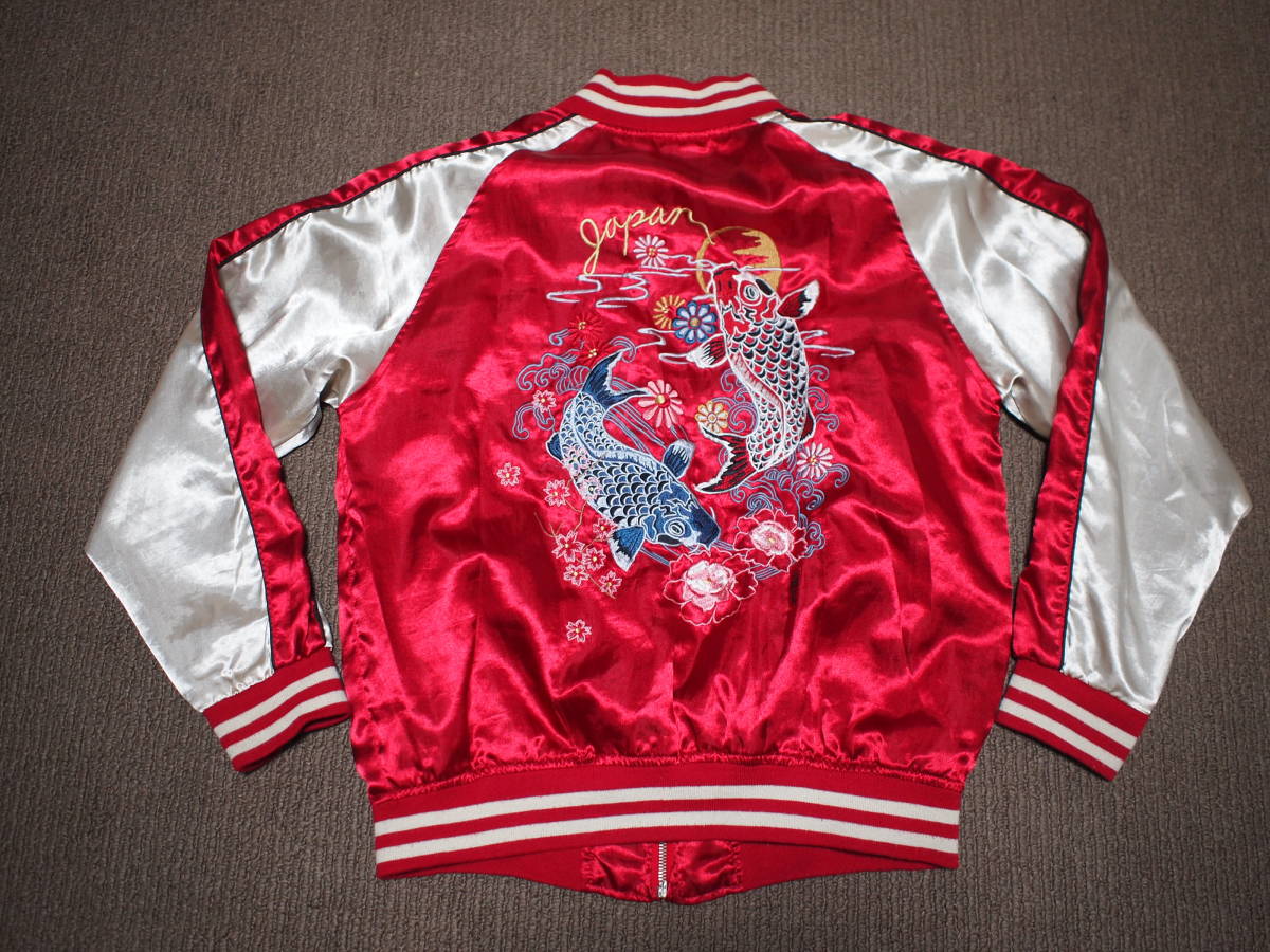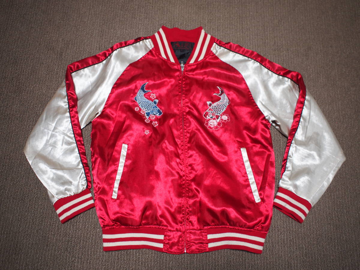 貴重 一心如鏡 鯉 和柄 スカジャン L  サテン ヴィンテージ