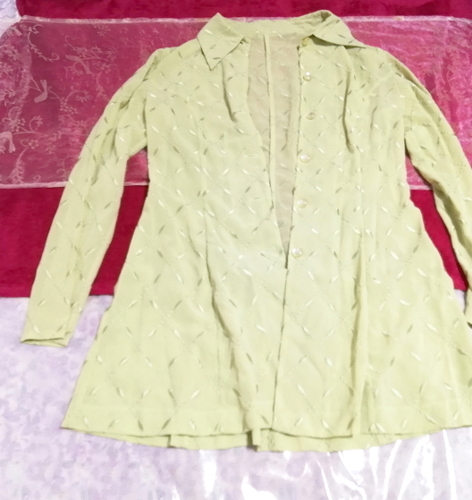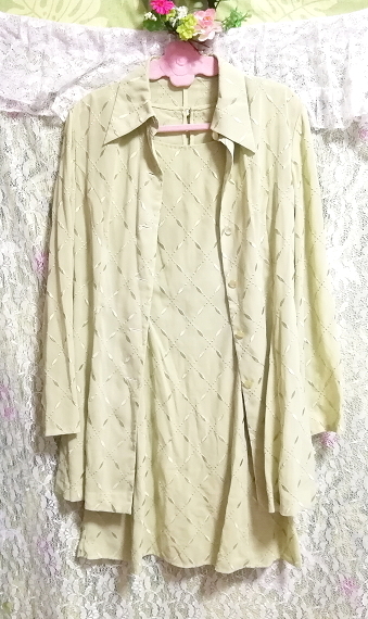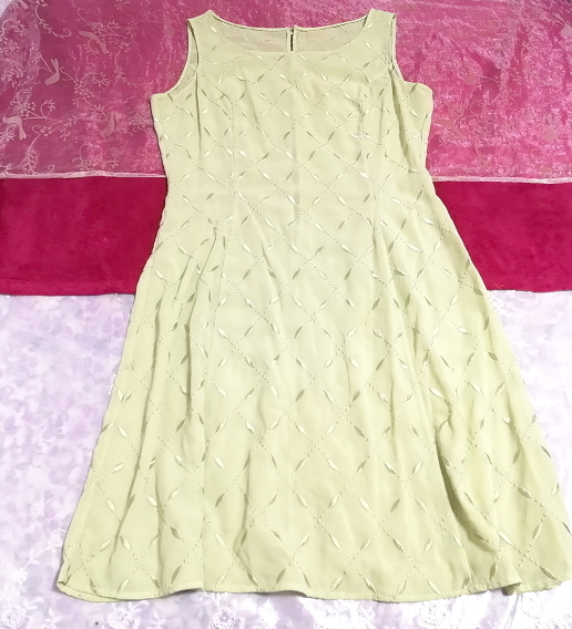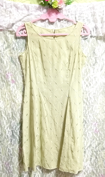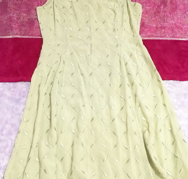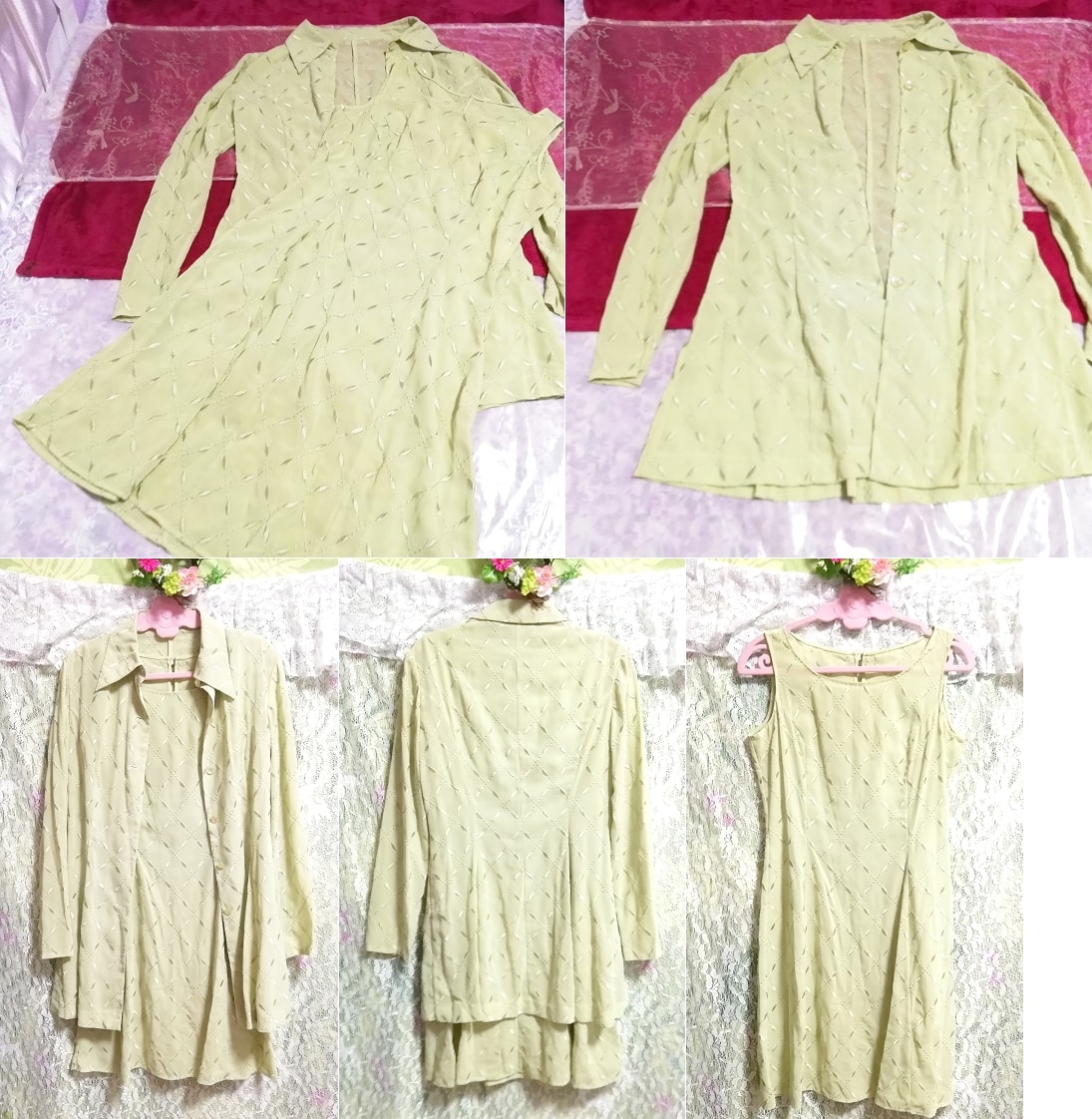 黄緑グリーンシフォン羽織カーディガンノースリーブワンピース2ピース Yellow green chiffon haori cardigan sleeveless dress 2 piece