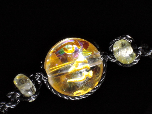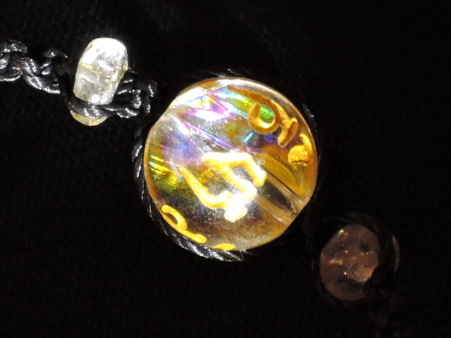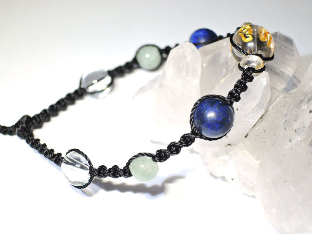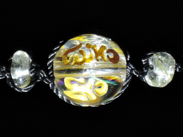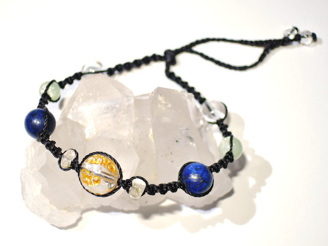 ★念珠石★虹入り金箔梵字水晶★ハンドメイド数珠ブレスレット★天然石ヒマラヤクリスタル&翡翠&ラピスラズリ★男女兼用kamesan