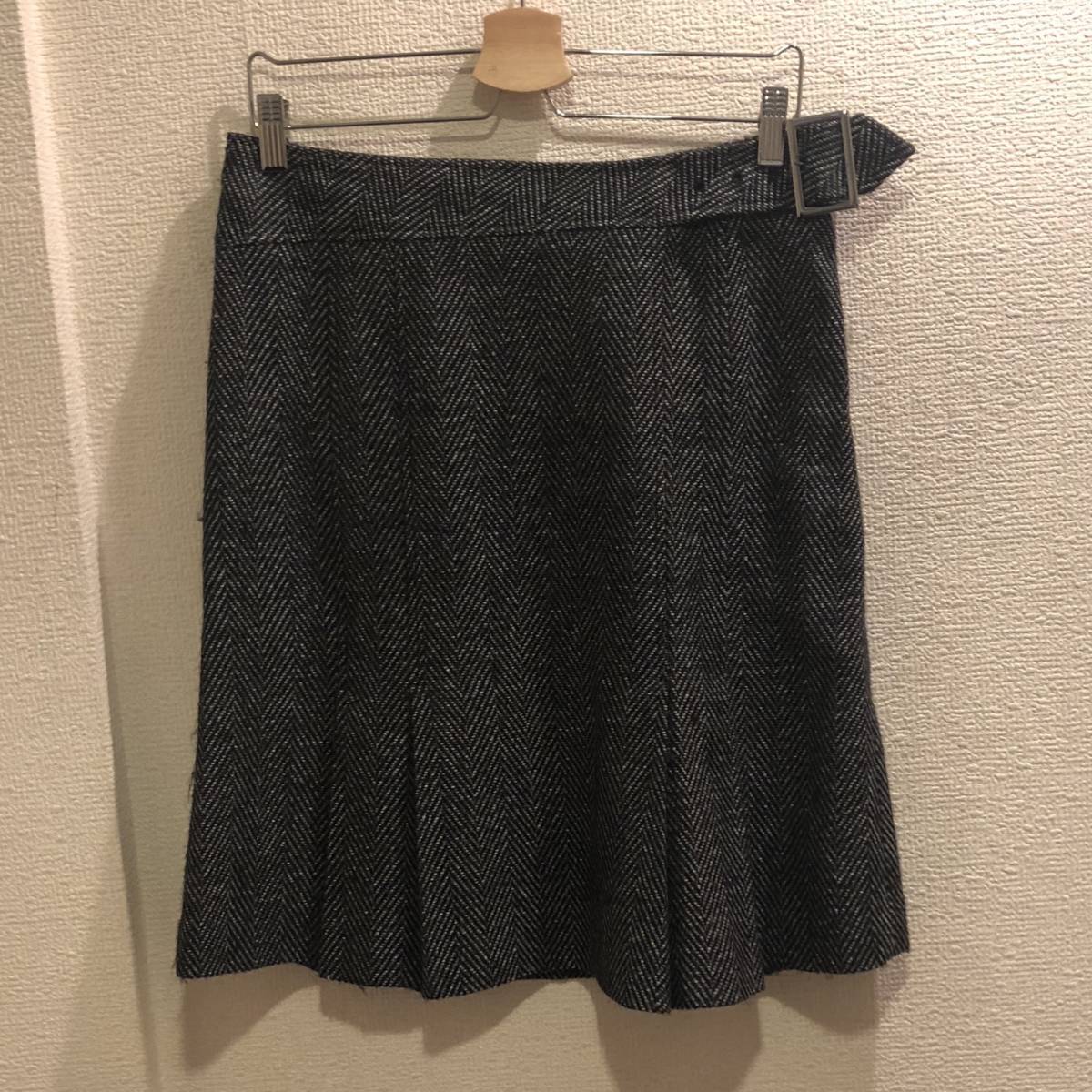 アンタイトル/UNTITLED シルク混ベルト付きウールフレアスカート