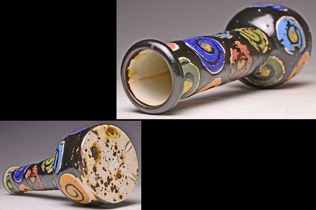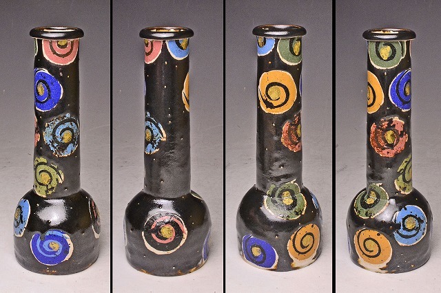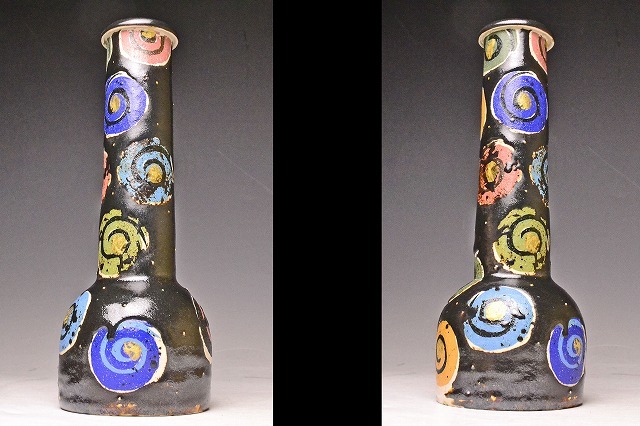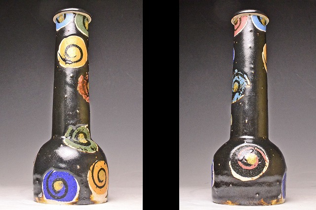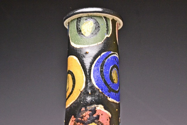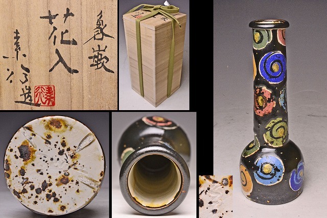 坂本素行 ★ 象嵌花入 ★ 共箱 ★ ポップアートの様な色使いが楽しい逸品 ★