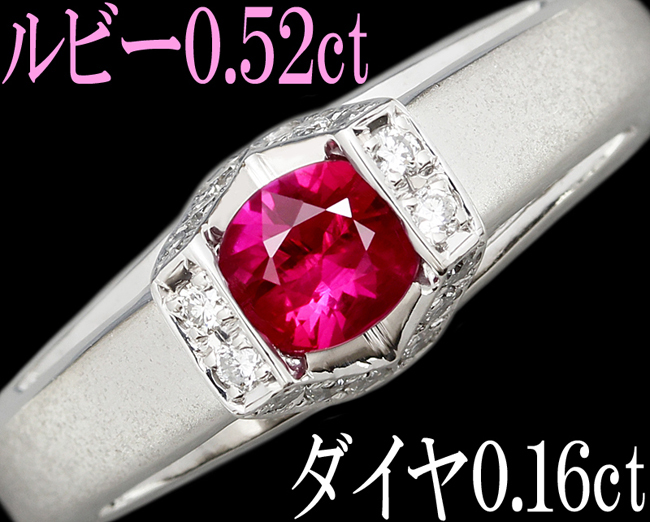 上質 上品★ルビー 0.52ct ダイヤ 0.16ct Pt900 プラチナ リング 指輪 14.5号♪鑑別付・送料込 | ||