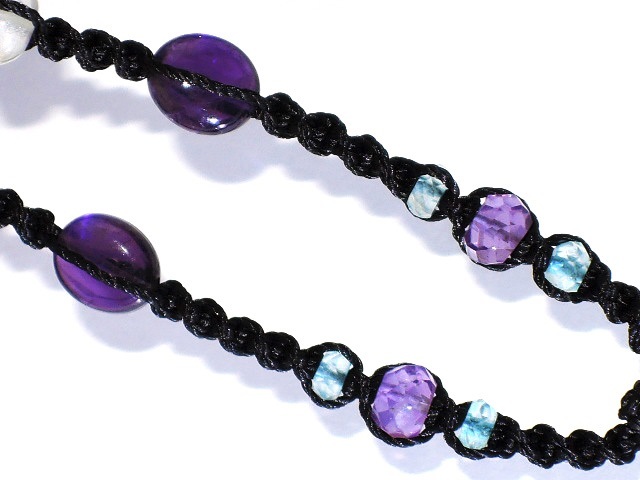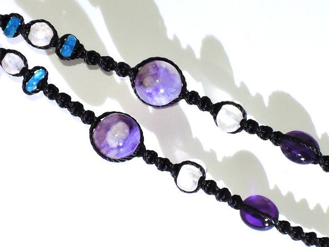 編み込みの天然石ビーズは下から左右対称に