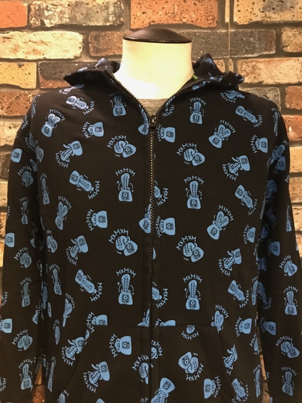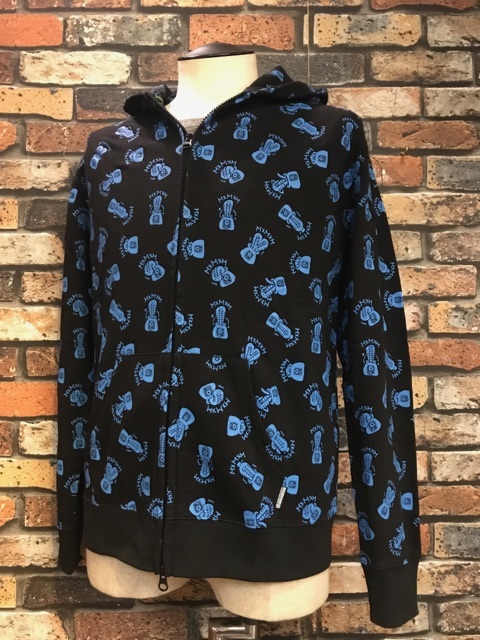 G543 メンズパーカー MAGICAL MOSH MISFITS マジカルモッシュミスフィッツ ストリート おしゃれ カジュアル 人気 ブラック 総柄 プリント ジップアップ 美品/ M