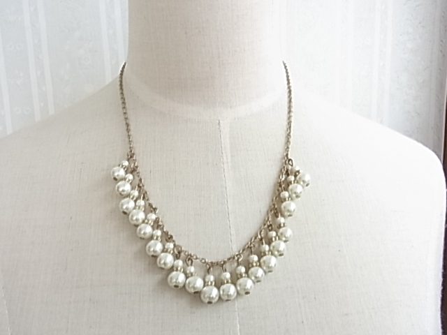 パール調ビジュービーズストーン ゴージャス感 大人可愛いデザインのネックレス☆
